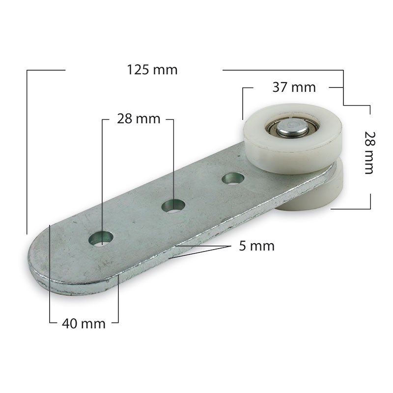 10446 - Kugellagerrolle für Schmitzprofile LA=28 mm B=40 mm. s=4 mm L=110 mm