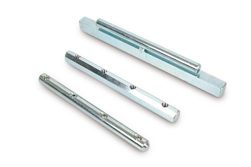 50471 - Verbindungsachse für Alukederschiene 50452 (21x48 mm). 12x12x150 mm inkl. 4 Gewindestiften M6x6. Stahl verzinkt